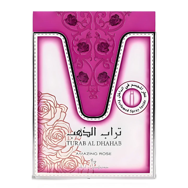 Amazing Rose by Turab Al Dhabab is a delicate floral fragrance opening with fresh rose petals and citrus, evolving into a heart of Damask rose, jasmine, and peony, with a soft musky-amber-wood base. Ideal for feminine elegance and casual romantic occasions.