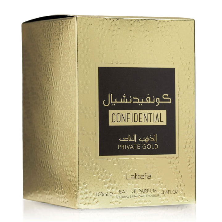 Confidential Private Gold by Ard Al Zaafaran - EDP Unisex 100 ml is a refined unisex fragrance with fresh citrus and spices on top, a floral heart, and a rich woody oriental base. Perfect for all-season wear.
