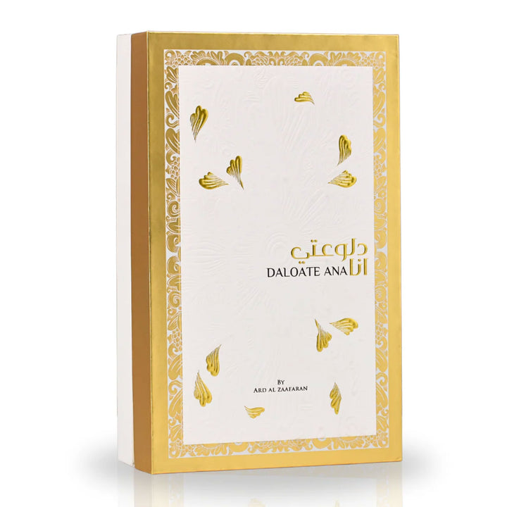 Daloate Ana by Ard Al Zaafaran is a luxurious and captivating fragrance that embodies the essence of sophistication with its harmonious blend of fruity, floral, and musky notes. This 100ml Eau de Parfum is perfect for both men and women who appreciate a complex scent that transitions seamlessly from day to night. The fragrance opens with top notes of apricot and vetiver, leading into a heart of tuberose and white flowers, and settles into a base of patchouli and musk. Packaged in an elegant bottle, Daloate Ana is a delightful addition to any fragrance collection.