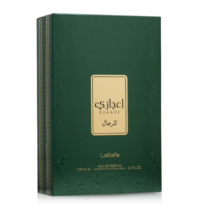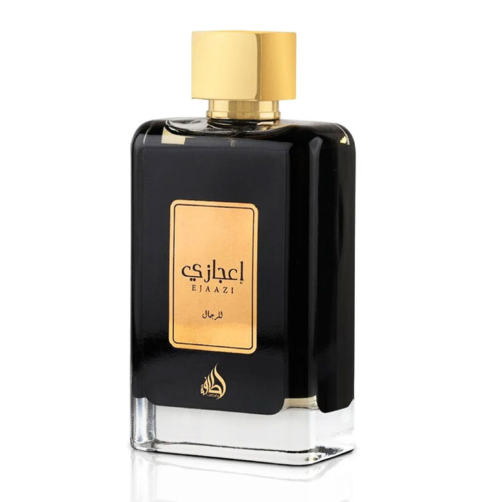 Ejaazi, Men – Lattafa – 100 ml by Lattafa is a bold and masculine fragrance blending woody, oriental, and spicy accords. It opens with invigorating top notes of bergamot, black pepper, and cardamom, flows into a rich heart of oud, rose, and nutmeg, and rests on a warm base of musk, amber, and cedarwood. Perfect for day or evening wear, formal occasions, or casual outings, leaving a confident and lasting impression.