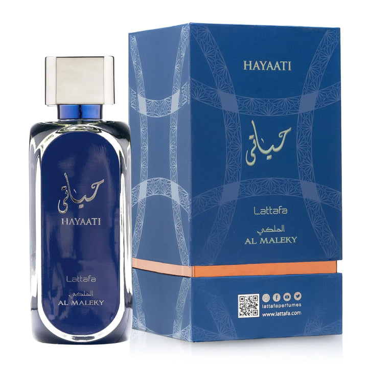 Hayaati Al Maleky, Men – Lattafa – 100 ml by Lattafa is a bold and refined fragrance designed for men who exude confidence and elegance. It opens with fresh top notes of bergamot, lemon, and nutmeg, develops into a rich heart of cedarwood, jasmine, and patchouli, and settles into a deep base of oud, musk, and amber. Ideal for both day and evening wear, formal occasions, and special events, leaving a memorable and masculine impression.