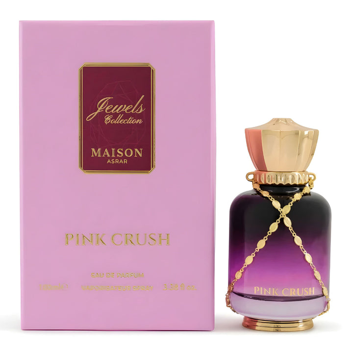 A vibrant, feminine fragrance with juicy fruits, soft florals, and a warm, comforting base. Maison Asrar Pink Crush is elegant, playful, and unforgettable.