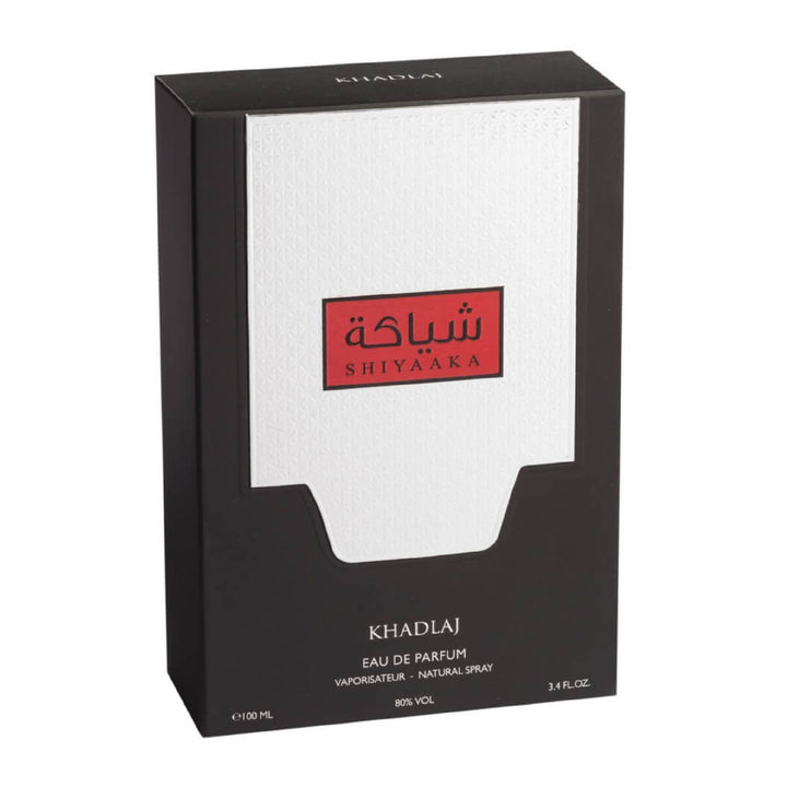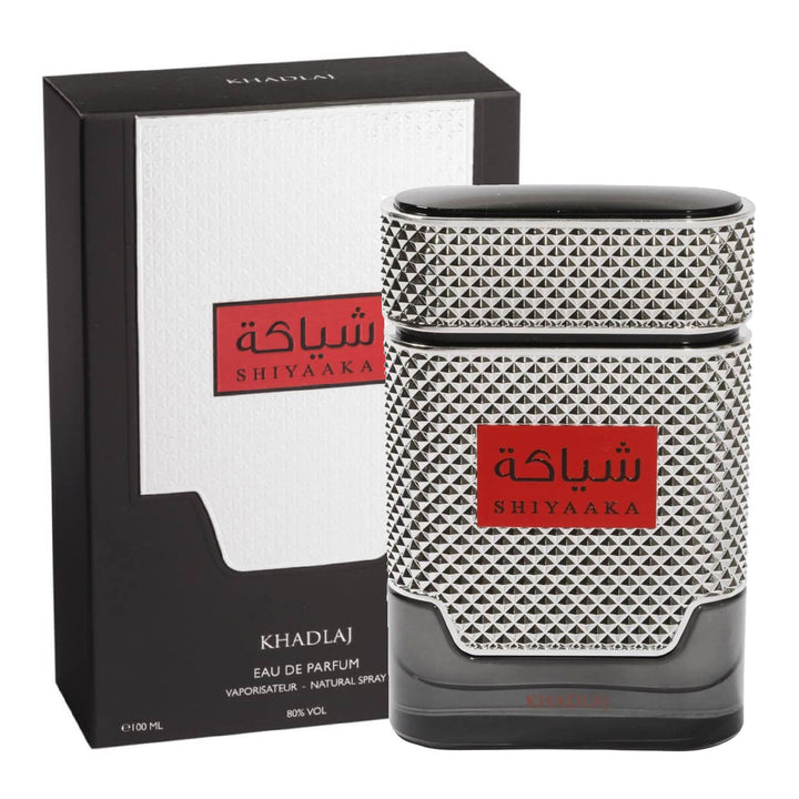 Shiyaaka Eau de Parfum is a bold woody spicy fragrance opening with citrus, pepper, and aromatic spices, a heart of cedarwood, patchouli, and lavender, and a rich base of musk, amber, and oud. Perfect for evening elegance or office confidence.